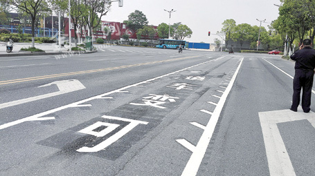 昨天下午,记者来到和平路与长江路三岔路口,这里新设的四条“可变车道”将为“五一”小长假里前往西津湾停车场的人们提供方便。此处是继长江路与迎江路交会口之后,第二处启用可变车道。